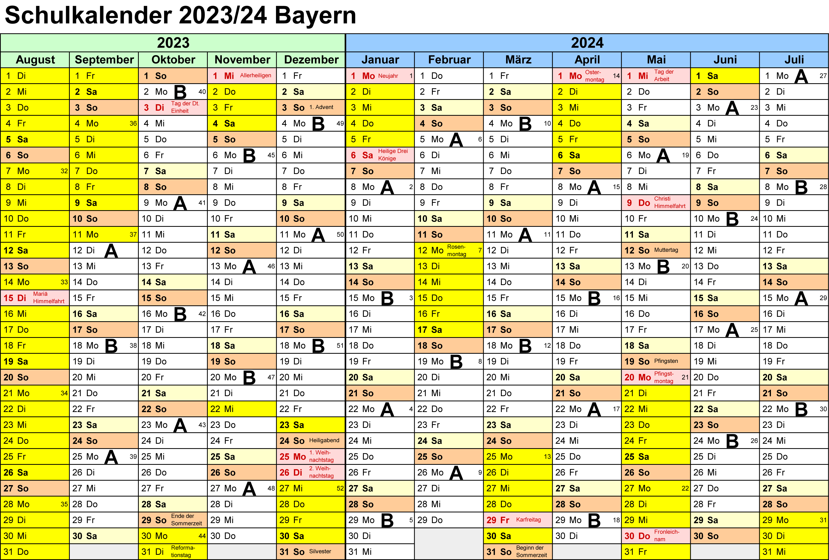 Kalender des Schuljahres 2025/2026 mit A/B-Wochen